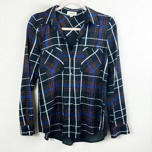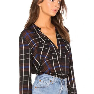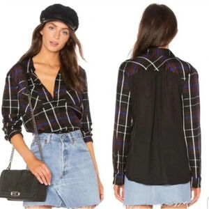 L'agence Denise Plaid Print Silk Contrast Back Button Up Flannel size XS