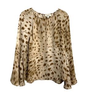 L'agence Dylan Cheetah Print Silk Blouse In Cacao Sz S