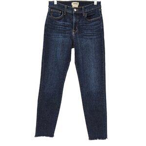 L’agence El Matador Skinny Jeans In Bruno Dark Wash Blue Ankle Crop Frayed Hem Raw Hem High Waisted High Rise Pockets Whiskering Fading Women’s