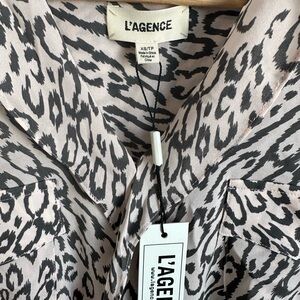 This is a gorgeous 100% silk wrap blouse with pockets. Perfect for business casual.