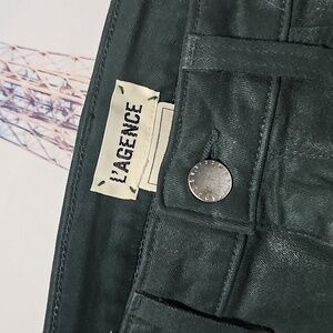 Stylish green coated skinny jeans. Perfect for a chic look.