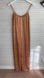 A fashion-forward jumpsuit in honey and sand stripes. This statement look is gathered into a v-neck before releasing into a loose, oversized silhouette with wide legs. The subtly crinkled fabric amplifies the luxe drape and flow of the design. Features include adjustable spaghetti straps and an open back with stretch detail to keep the beguilingly simple look comfortable and secure.