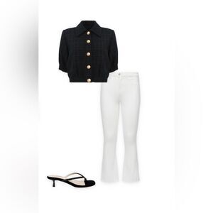 A classic staple white jean with a little edge being coated to feel like leather. New without tag. Waist 15”, rise 11”, inseam 27”. Stock photos show fit and fun ways to style. Questions? Leave a comment below!
