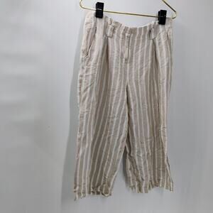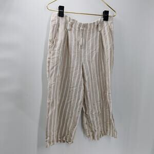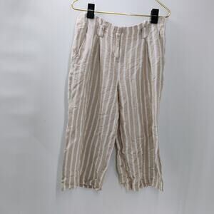 L'agence Linen Pants 6 Striped Cropped Wide Leg Fringed Pockets Drawstring