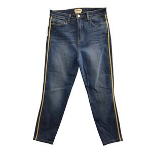Features: Margot Striped Skinny Jeans Hi Rise Braided sides Ankle Length Medium wash Neptune colorway