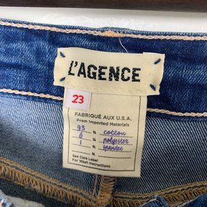 L’agence Marguerite High Rise Skinny Dark Vintage Jeans in size 23. Excellent condition. Distressing/ whiskering along pocket edges