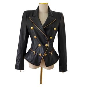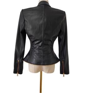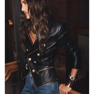 A feminine leather jacket with edgy statement hardware and a super sculpted, flattering fit.