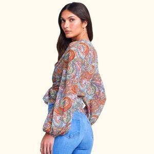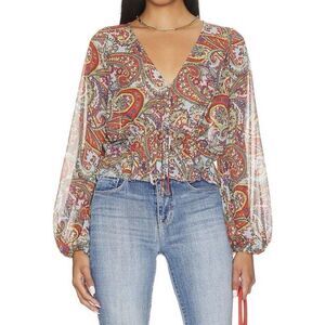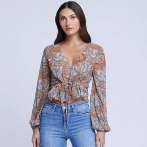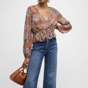 L'agence Pixie Drawstring Blouse in Paisley Multi Size Small