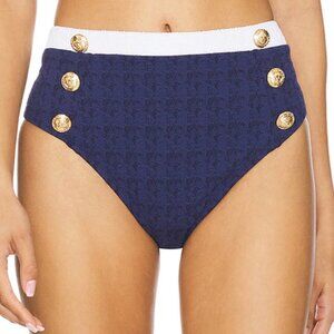 Our most flattering and sophisticated bikini bottom, featuring graphic contrast trim and decorative gold buttons.