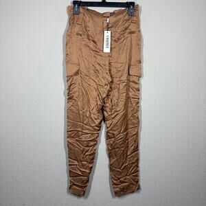 L'agence Womens 2 Paperbag Pants Brown High Waisted Straight Side Pockets