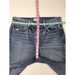 Wash: Medium Blue with Distressing. Raw hem