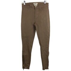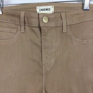 L'agence Womens Sabine Skinny Maigre Cappuccino Coated Zip Ankle Jeans Brown 26