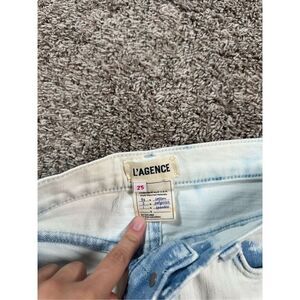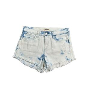 L’agence Zoe Bleached Acid Wash Fringe Raw Hem Denim Jean Shorts 25 Blue White
