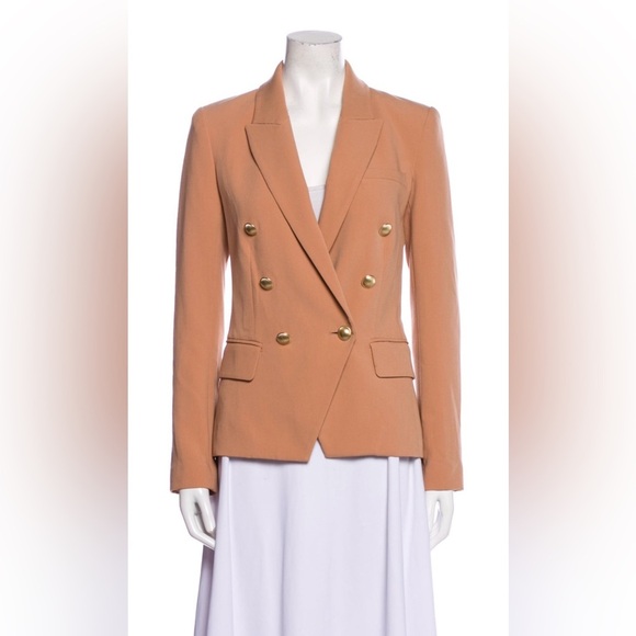 Elevate your style with this chic double-breasted tan blazer. Perfect for any occasion, this jacket offers a sophisticated look with its classic design and gold button accents.