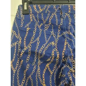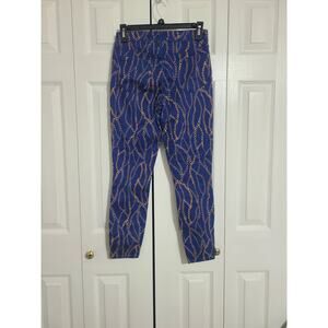 High-rise skinny jeans are finished with a bold goldtone chain print.