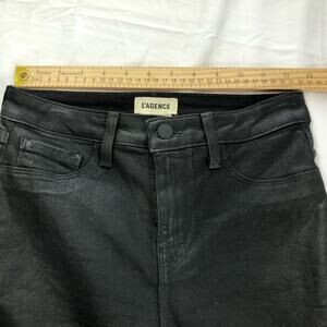 L’agence womens 25 Kendra high rise crop flare noir coated raw hem jeans shimmer