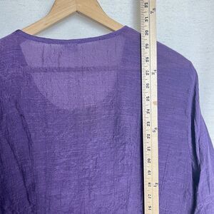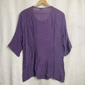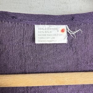 Lagenlook Blouse Silk Cotton Blend M Purple Buttons 3/4 Sleeve