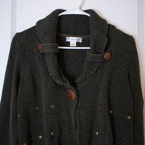 Lagenlook Knit Cardigan Grommet Detail Cottagecore Sweater | Soft Autumn