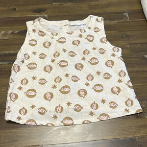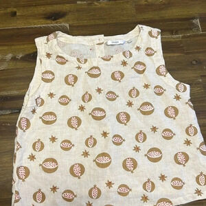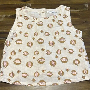 Lagenlook Max Cotton Flex Blend Top Printed Pomegranate Red Button Back