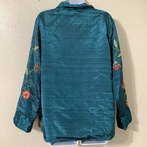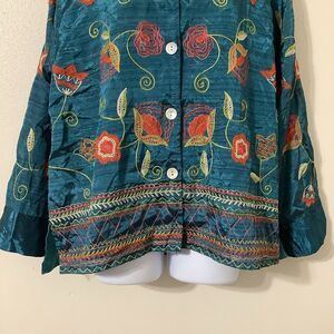 Lagenlook Oversized Embroidered Teal Artsy Boho Hippie Button Up Shacket XL