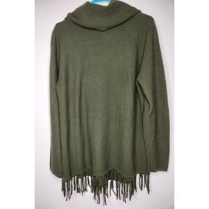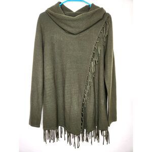Lagenlook Oversized Fringed Woman's Sweater Sz. L Olive Green Fringed Boho Knit