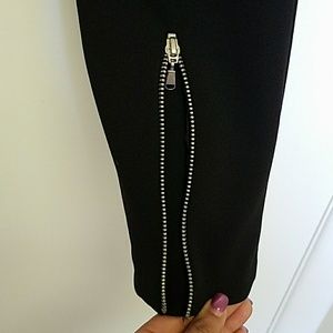 A very unique and elegant Black lagging with a side zipper to wear and 4 zippers to decorate it imported from Italy brand new with tags.
