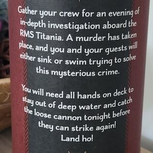 Who committed murder on the HSS Titanic? Only your guests can uncover the truth. Set sail on suspense!