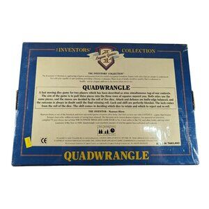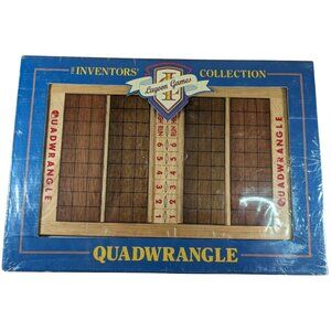 This is a sealed copy of Quadwrangle, part of the “Inventors’ Collection” from Lagoon Games. Designed by Maureen Hiron (of Continuo fame), Quadwrangle is a fast-paced dice game for two players that’s been described as nine mini tug-of-war contests happening at once. Each side uses the same pieces, but tries to pull three of them into the nearest rows of squares. Dice rolls determine your moves, adding an element of luck to the underlying strategy and risk-taking. The board is made of wood (as are most Inventors’ Collection editions) and it’s still in the original shrink wrap, so you can expect all components to be intact. Perfect for fans of quick, competitive tabletop games or those who collect unique wooden board games. It’s eco-friendly, easy to learn, and offers a nice balance of chance and clever decision-making.