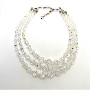 Laguna 1960s Aurora Borealis Crystal Necklace Three Strands Vintage