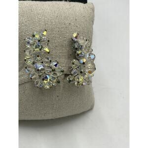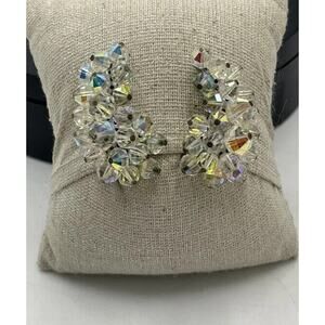 Vintage Laguna Crystal Aurora Borealis Bead Earrings Clip On
