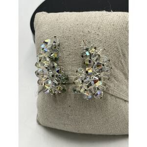 Laguna Vintage Crystal Cluster Aurora Borealis Bead Earrings Clip On Silver Tone