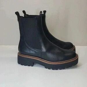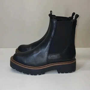 A heavily lugged sole lends a utilitarian update to a classic Chelsea boot with stretchy gore insets at each side.
