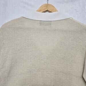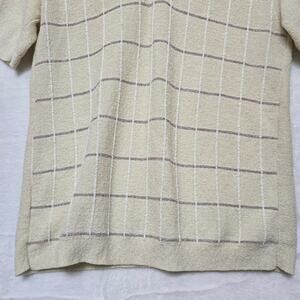 vintage knit polo, retro sweater, golfcore shirt, preppy knit top, 80s polo sweater, beige short sleeve knit, USA made vintage top, cream striped polo, Vintage, Golfcore, Preppy, Retro, 80s Style, Knit Polo