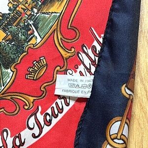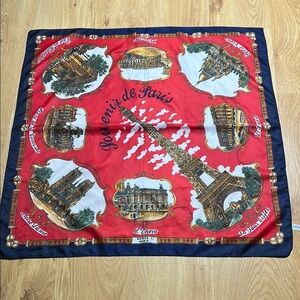 This is a beautiful Lahmy 30” Square Souvenir de Paris Scarf by Roger L. Paris Parisian Theme. Made in Italy. 100% Polyester. Excellent condition. No issues at all.