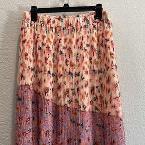 A charming melody of floral prints decorate this pleated skirt. Style with a button-down and heels for a special occasion or a chic office look.