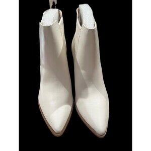 Laicigo Women's Chunky High Heel Ankle Block Slip On Short Chelsea Booties, SIze 6 1/2. 3 1/4 inch heel. You can wear these with a summer dress, skirt or shorts. The only flaw i can see is noted in the pictures. It's a small line in the material. They are creamish, off white in color