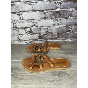 Selling Laidback London Brown Leather Handmade Boho Floral Beaded Sandals Women’s sz 7M US/38EU