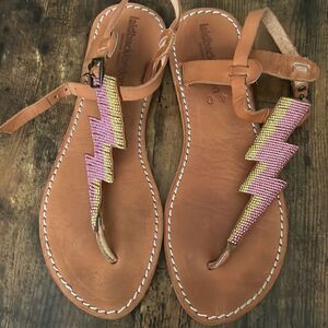 Laidbacklondon Thunder Beaded Embellished Brown Sandals Size 10