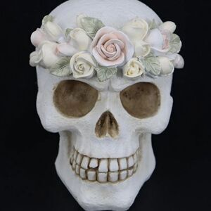 Add a touch of whimsy to your decor with this floral skull home accent. Featuring delicate cream and pink hues, it's a unique piece for any room.