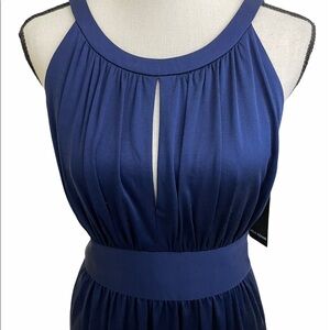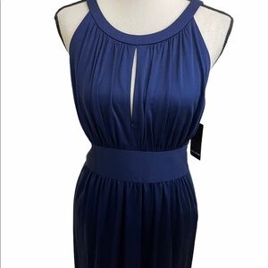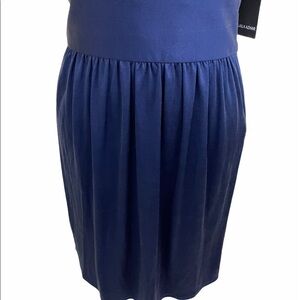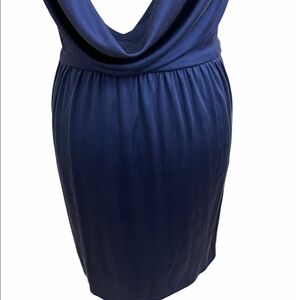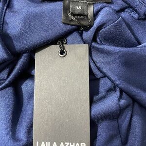 Laila Azhar dark blue 100%silk dress. Round color open drape back. Zipper on side. Has a stretch. New with tags. Size Medium.