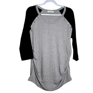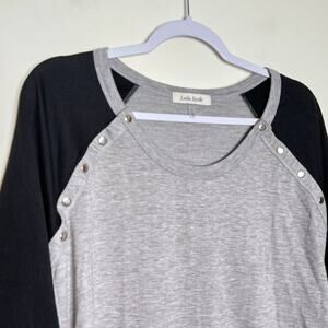 Laila Jayde 3/4 Sleeve Raglan Tops - Gray Black NWT Size Large