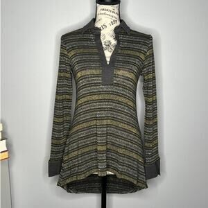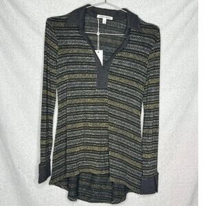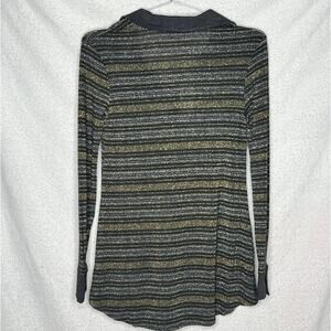 Laila Jayde (XS) Shimmer Stripe Collared Long Sleeve High Low Metallic Knit Top