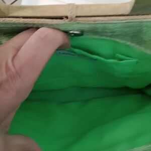 Wooden handle. Lime green inside. EUC Very Clean!! Snap closure.