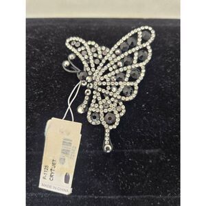 Laila Rowe Black/White Rhinestone Butterfly Brooch Pin
