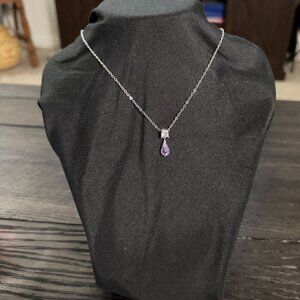 Laila Rowe Silver Tone Necklace W/Purple Teardrop & Clear Crystal Pendant 14"