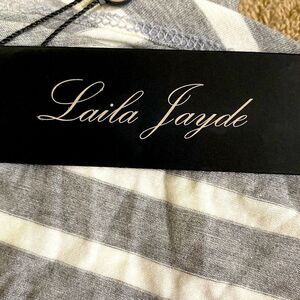 Laila jayde heather gray white stripe razor back 94% rayon 6% spandex brand new
