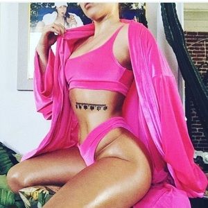 We have sets of belted kimono Top and drawstring pants with pockets and also have the sheer belted kimono and sheer drawstring elastic waist w pockets pants set in yellow and black sheer and have a electric neon sheer belted kimono , a white sheer belted kimono by Laina. have tons of lingerie Brand new & earlier velour lounge sets (long sleeve top and pants) in many colors sweatsuits loungesuit. We have the long Minky coat in pink , summer luvr , neons, reverse cowgirl, & many more Lainarauma barbiecore