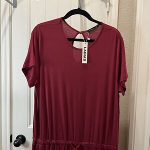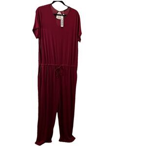 Lainab Burgundy Maroon Jumpsuit Jumper Drawstring Waist Short Sleeve Womens 2XL