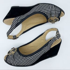 Laisha Peep Toe Wedge Sandal Slingback Velvet Heel
