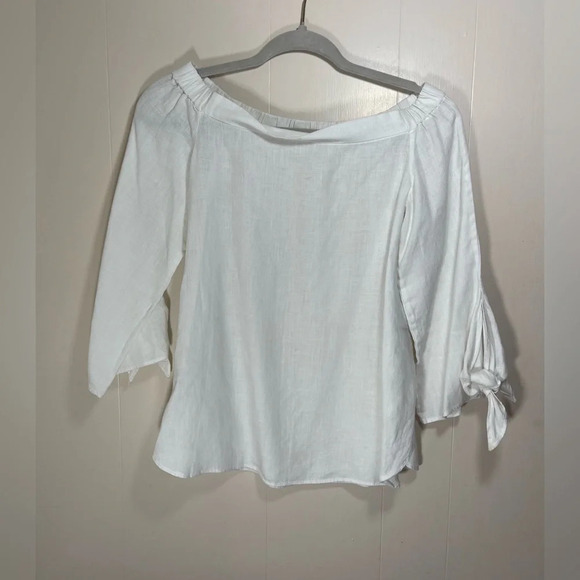 Laju 100% Linen Off The Shoulder Sheer White Blouse Top Women’s Size XS